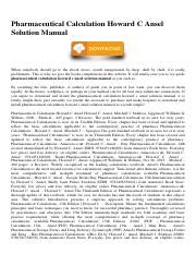 Download online PHARMACEUTICAL CALCULATION HOWARD C ANSEL SOLUTION MANUAL Kindle Editon Gutenberg